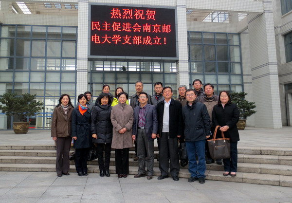 12月18日,中国民主促进会南京邮电大学支部成立大会在仙林校区举行。江苏省政协副秘书长、民进江苏省委副主委徐菊英,民进江苏省委秘书长、省直工委主任王鲁彬,民进江苏省委组织处副处长孙宏霞,我校党委副书记、副校长凌迎兵,统战部部长孙力娟,统战部副部长彭小平,我校各民主党派代表以及民进南邮成员参加了大会。