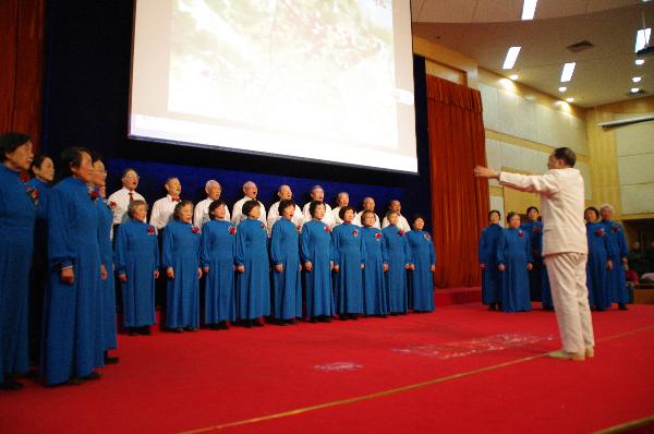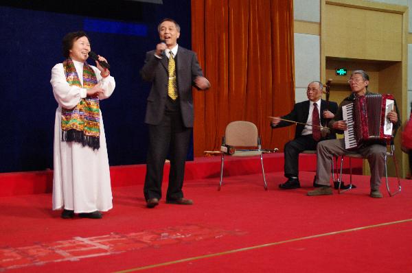 会后,老同志举行了迎新联欢会。四百多位离退休老同志欢聚一堂,载歌载舞,共同辞旧迎新。101岁的老红军秦华礼老书记也到现场听取了报告并观看了演出。联欢会由王传娟、张俊祥两位老师主持。老年合唱团表演的大合唱《大森林的早晨》拉开了演出的序幕,民族舞、拉丁舞、广场舞、太极养生舞、小合唱、戏曲表演轮番上演,精彩纷呈。老同志表演的《伦巴》舞姿优美,让大家眼前一亮。老年舞蹈队的表演更是体现了老年人的风采和积极生活的态度。板胡、手风琴伴奏的表演唱《白毛女组曲》赢得了大家的阵阵喝彩。房庆新老院长展示了他的书画作品《奔马迎春》,并赋诗一首“牵来徐公马三匹,无须扬鞭自奋蹄,奔腾喜迎甲午年,实现美梦志千里。”表达了对现场观众马年的美好祝愿。