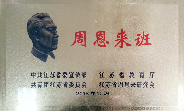 2012年12月22日,我校人文与社会科学学院2011级公共事业管理专业一班被命名为南京邮电大学“首届周恩来班”。该班由来自11个省市的38名学生组成,其中包含预备党员5名、入党积极分子24名。周恩来班创建两年多来,在学习、社会实践等方面表现突出,据统计,2013年全班学生共获得50多项奖助学金、学科竞赛类等奖励,全班平均绩点达到3.22,全国大学英语四级、六级通过率分别为97.4%、68.4%,十余人任学校、院社团主要学生干部。2013年暑假期间,由该班多名同学组成的“周恩来班”暑期社会实践团队,开展“追寻伟人足迹,共筑中国之梦”暑期实践活动,荣获“2013年江苏省大中专学生科技文化卫生三下乡社会实践优秀团队”称号。2013年该班还被学校评为“南京邮电大学先进班集体”。