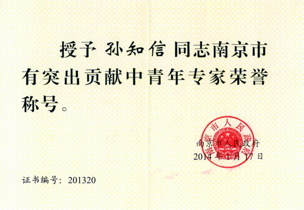 近日,南京市人民政府发布了《市政府关于公布第七批南京市有突出贡献中青年专家名单的通知》,我校孙知信教授被授予“南京市有突出贡献中青年专家”荣誉称号。
