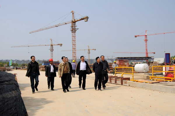 4月14日下午,校党委书记刘陈、校长杨震、副校长周南平在基建处负责同志的陪同下,到学科楼建设工地视察和指导工作。