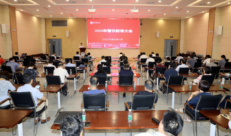 7月2日下午,学校在仙林校区学科楼报告厅召开2020年警示教育大会。校党委书记刘陈出席会议并讲话,校党委常委、纪委书记、省监委派驻南京邮电大学监察专员李子全主持会议。在校全体校领导、校党委委员、纪委委员,全体中层正职在主会场参会,全体中层副职、重点岗位科职人员通过网络视频,在各自分会场参加第一阶段会议。