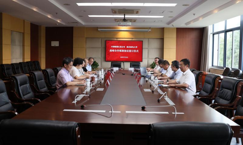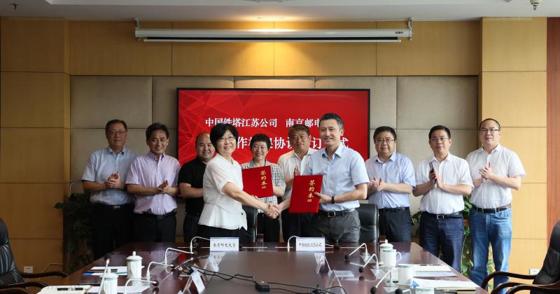 7月16日下午,中国铁塔江苏公司-南京邮电大学战略合作框架协议签订仪式在我校仙林校区行政楼第一会议室举行。中国铁塔江苏公司党委书记、总经理李工,党委委员、副总经理戴海兵,我校校长叶美兰,校党委常委、总会计师兼干部教育学院院长姜小舜出席签约仪式。签约仪式由姜小舜总会计师主持。戴海兵副总经理和姜小舜总会计师代表双方签订《战略合作框架协议》。