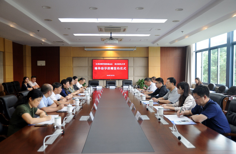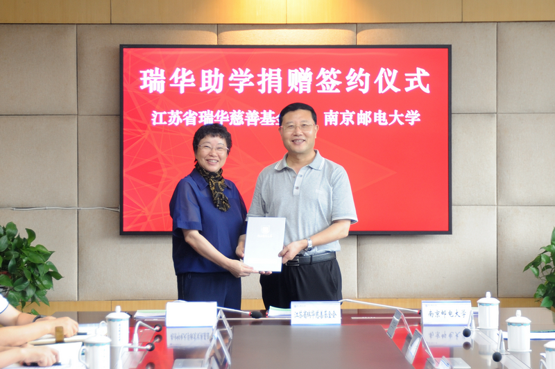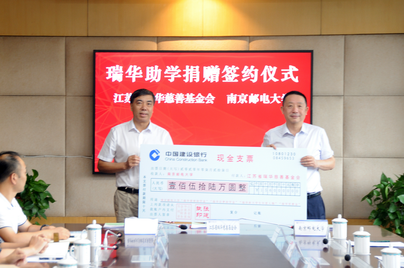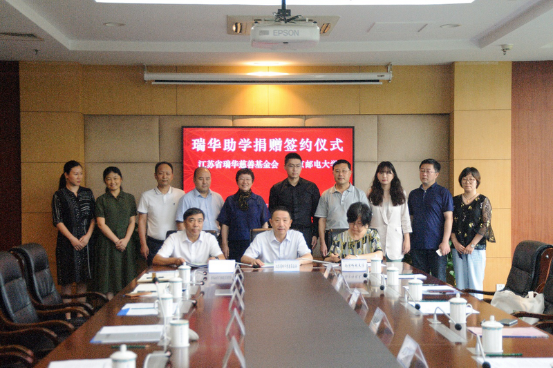 7月27日下午,江苏省瑞华慈善基金会—南京邮电大学瑞华助学捐赠签约仪式在我校仙林校区行政楼第一会议室举行。江苏省瑞华慈善基金会副理事长张奥星、史兆荣,秘书长张颂杰,江苏瑞华投资控股集团董事长助理郑志慧,我校校长叶美兰,校党委副书记、教育发展基金会理事长王国平,校党委常委、总会计师姜小舜出席签约仪式。王国平副书记主持签约仪式。