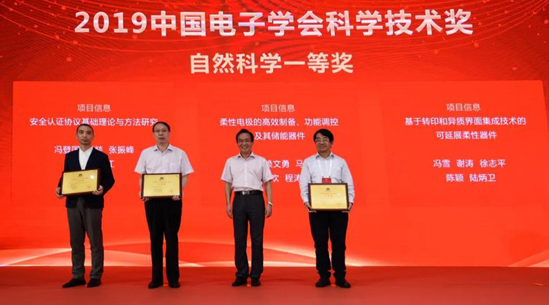 8月15日,2019年度中国电子学会科学技术奖励大会在北京举行。由中国科学院院士、我校信息材料与纳米技术研究院院长黄维院士领衔的“柔性电极的高效制备、功能调控及其储能器件”项目获得中国电子学会科学技术奖自然科学一等奖。