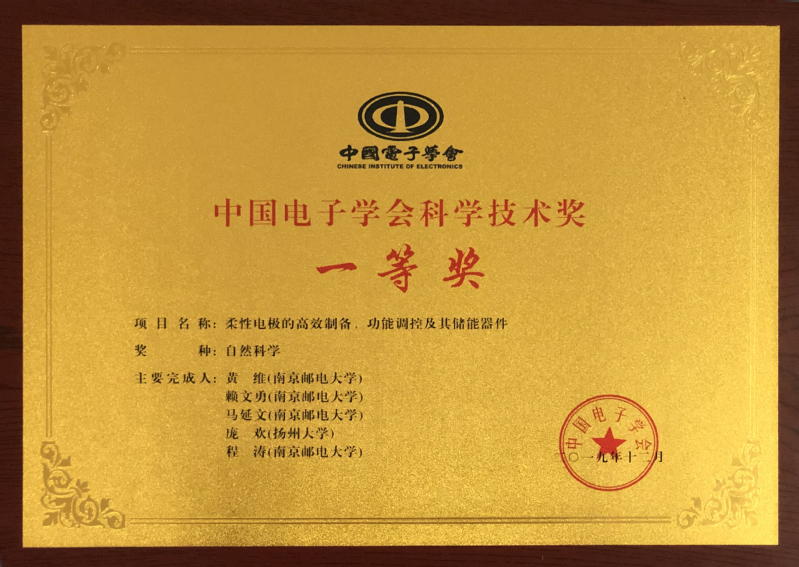 该项目主要完成人为我校黄维院士、赖文勇教授、马延文教授、扬州大学庞欢教授、我校程涛博士。黄维院士及其团队围绕柔性电极材料的设计制备、功能调控及其器件应用角度,研制出了新型可挠曲柔性电极,建立了印刷制备柔性电极新工艺,成功开发出高性能柔性储能器件,实现了低成本柔性储能。团队致力于解决若干制约柔性电子发展的关键瓶颈问题,推动了柔性电子科学技术的快速发展。
