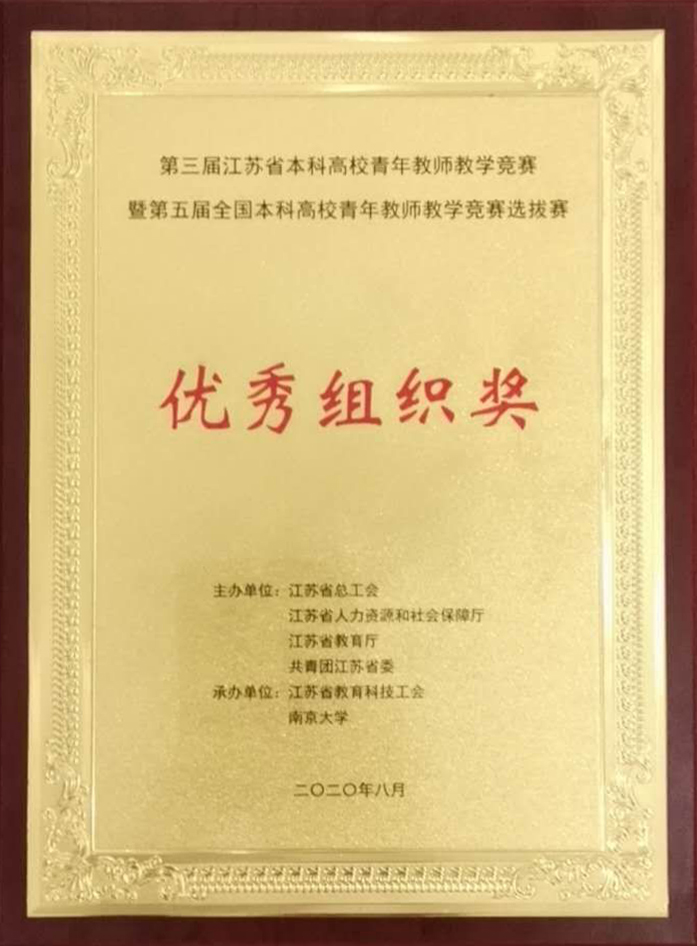 8月23日,第三届江苏省本科高校青年教师教学竞赛暨第五届全国本科高校青年教师教学竞赛选拔赛在南京大学落下帷幕。我校赵勃老师获工科组第一名并获特等奖,将代表江苏出征国赛,王发兴老师获理科组第三名并获一等奖,吴婧婧老师获文科组二等奖。赵勃、王发兴两位老师被省总工会授予“江苏省五一创新能手”称号、被省人社厅授予“江苏省技术能手”称号。我校获得本次竞赛优秀组织奖。