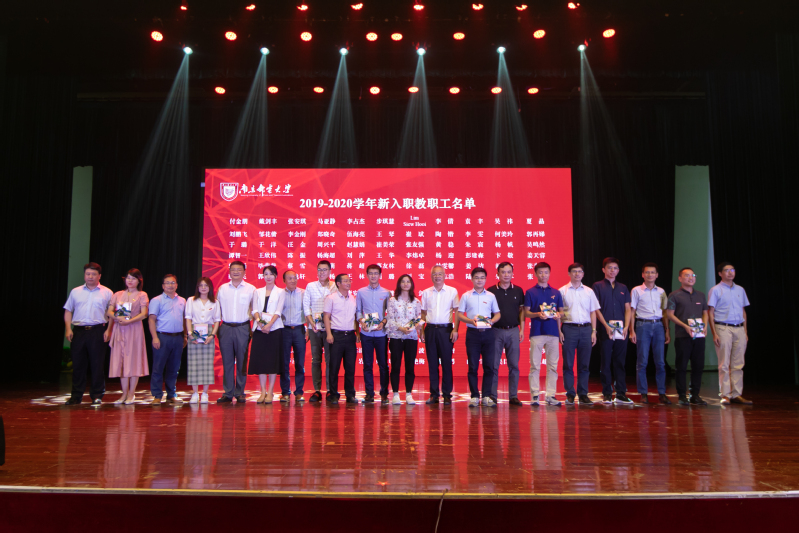 王国平副书记宣读《2019-2020学年表彰决定》,表彰过去一年在学校改革、发展和稳定工作中涌现出的先进集体和个人。各二级单位负责人为新入职教职工代表颁发校徽和赠送书籍,全体新入职教师入职宣誓。学生向从事教育工作满30周年的教职工代表献花,校领导为其颁发证书和感谢信。