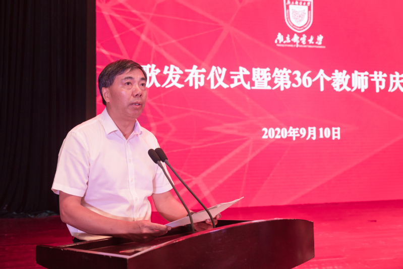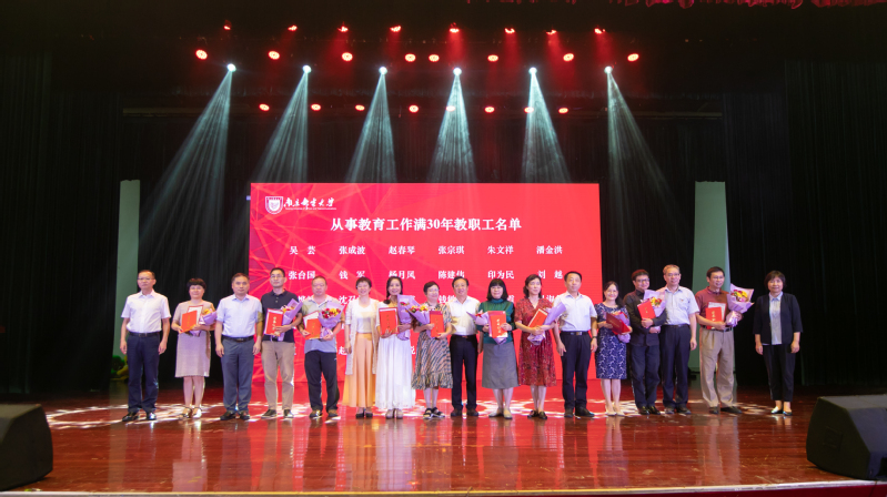 9月10日下午,我校在仙林校区青春剧场召开大会隆重庆祝第36个教师节。校党委书记刘陈,校长叶美兰,党委副书记王国平,党委副书记、副校长王宗荣,党委常委、副校长蒋国平,党委常委、副校长荆晅,副校长汪联辉,党委常委、副校长孙力娟,党委常委、总会计师姜小舜,全体中层正职干部,从教满三十年教职工、新入职教职工、学生代表等出席了本次大会,大会由校党委副书记王国平主持。大会线上直播同步进行,南邮师生校友同步收看了庆祝大会。
