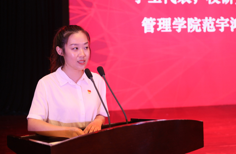 学生代表、校研究生会主席范宇鸿发言