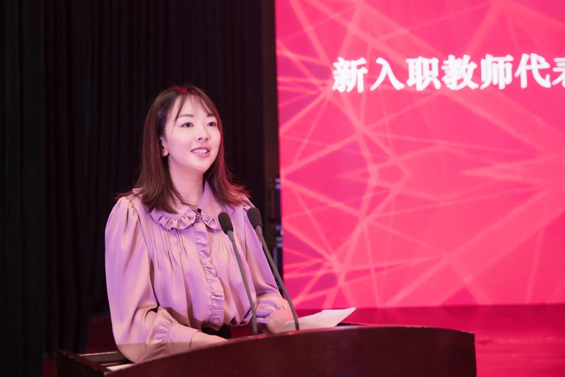 新入职教师代表、理学院邢岩老师分享了作为新老师的三点感悟:一是改变,努力实现从学生到一名合格教师的蜕变,用自己的人格和精神影响学生;二是责任,在工作中勇于承担肩上的重担;三是初心,要始终不忘初心,牢记教书育人的使命。她希望以优秀教师为榜样,争做一个有理想信念、有道德情操、有扎实学识、有仁爱之心的好老师。
