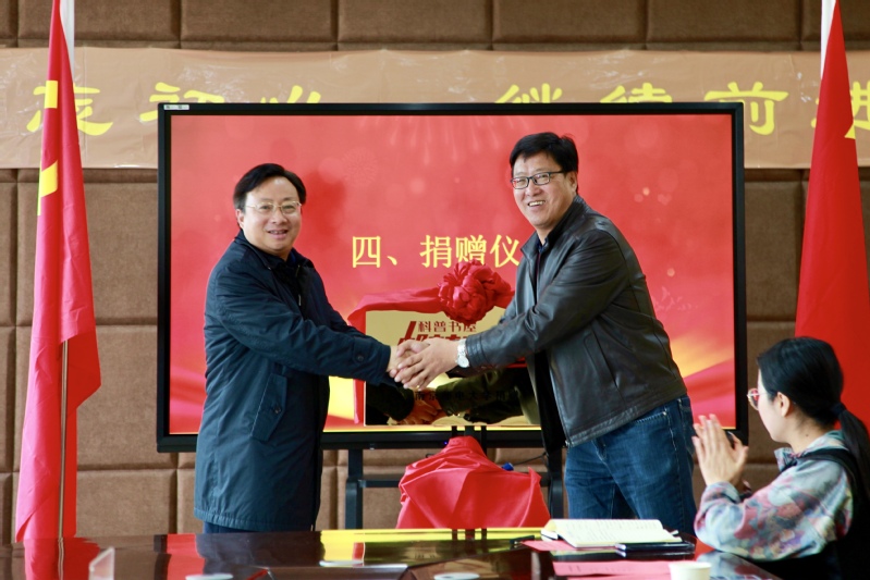我校刘陈书记与三江源民族中学张建国校长共同为“邮梦三江源”科普书屋揭牌