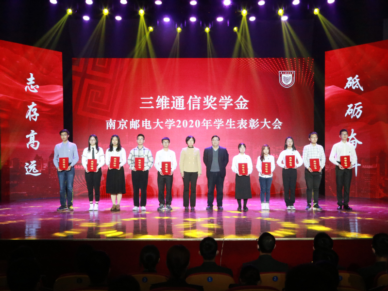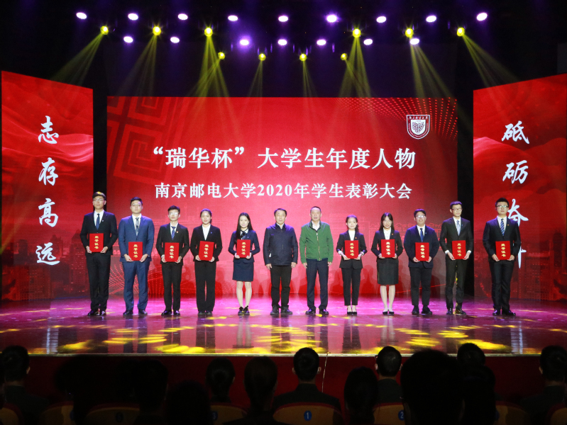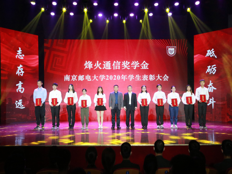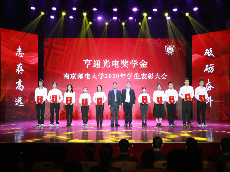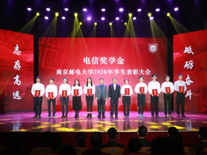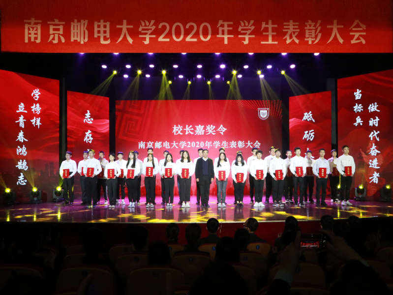 11月12日下午,我校在青春剧场举行2020年学生表彰大会。校党委书记刘陈,校党委副书记王国平,校党委副书记、副校长王宗荣,校党委常委、副校长蒋国平,校党委常委、副校长张志华,校党委常委、总会计师姜小舜,华为技术有限公司南京研究所合作经理邢镇,三维通信股份有限公司副总裁李卫义,长飞光纤光缆股份有限公司资深高级专家李建,江苏亨通光电股份有限公司人力资源总监李军,烽火通信科技股份有限公司副总裁邹辰,中国电信股份有限公司南京分公司副总经理沈振勇,中国移动集团有限公司南京分公司副总经理刘晓明,江苏省瑞华慈善基金会秘书长张颂杰出席大会。学校职能部门、学院相关负责人,优秀班主任代表,辅导员及学生代表等500余人参加大会。