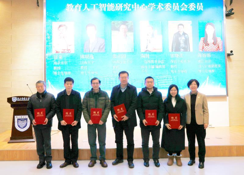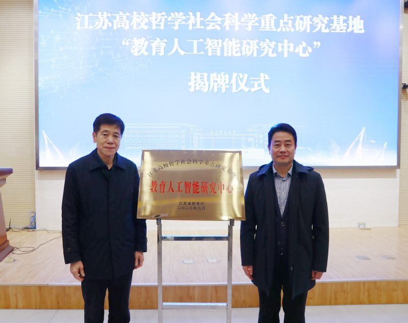 近日,江苏高校哲学社会科学重点研究基地“教育人工智能研究中心”揭牌暨专家聘任仪式在我校仙林校区计算机学科楼报告厅举行。校党委常委、副校长张志华,校党委常委、总会计师姜小舜,教育部高等学校教育技术学专业教学指导委员会副主任委员、江南大学陈明选教授,南京大学冒荣教授,教育部高等学校教育技术学专业教学指导委员会委员、陕西师范大学张立国教授,《远程教育杂志》执行主编陶侃研究员,浙江大学陈娟娟研究员以及校内外专家学者、企业代表出席会议。学校发展规划处(高等教育研究所)、对外联络处、教务处、科研院、教学质量监控与评估中心、研究基地建设单位主要负责人、教育科学与技术学院全体教师及学生代表参加会议。
