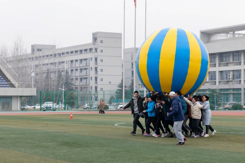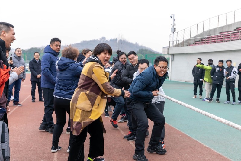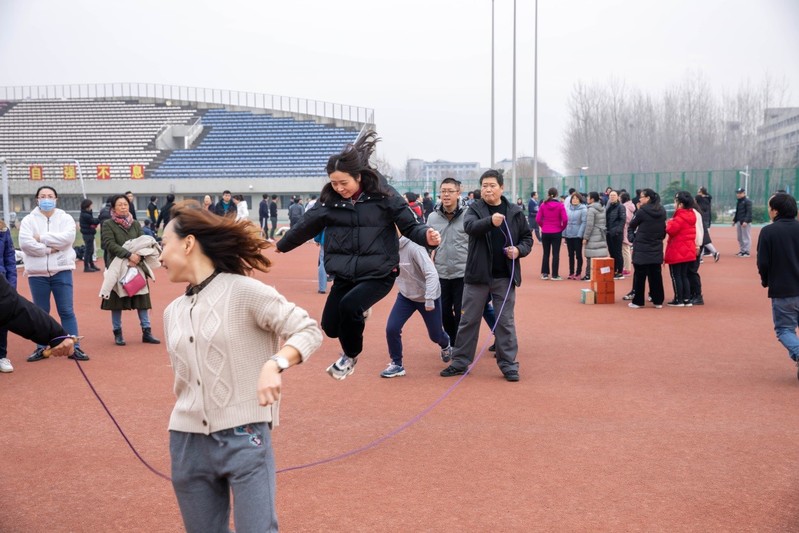 张志华副校长作动员讲话并打响发令枪。他指出,广大教职工要积极行动,在努力做好工作的同时,加强体育锻炼,提高身心健康素质。要同心同德,共同做好常态化疫情防控工作,持续巩固来之不易的良好局面。张志华副校长祝福大家在新年里工作顺利,幸福快乐。老师们欢聚运动场,心情轻松愉悦,热身运动认真到位,健身走活动热情高涨,欢声笑语连连。在拔河、集体跳绳和“运转乾坤”活动中,老师们团结协作、奋力拼搏。