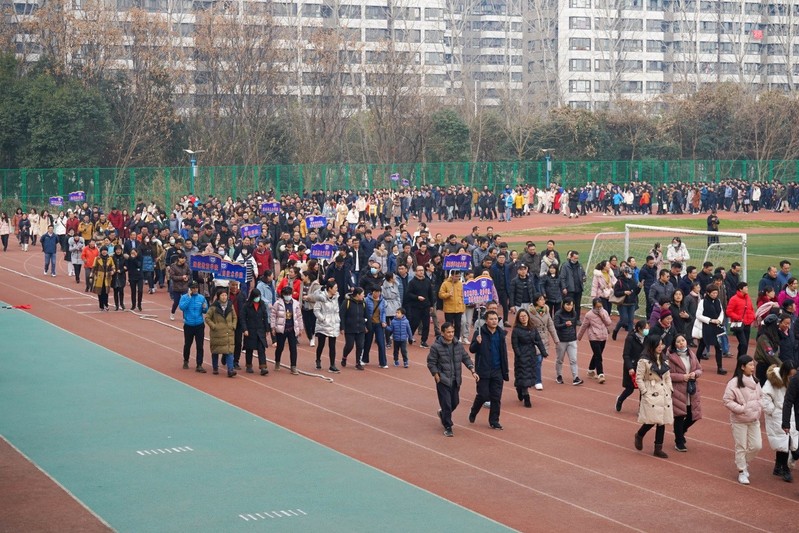 12月23日中午,由校工会主办、体育部协办的“迎新年”教职工健身活动在仙林校区主体育场举行,校党委副书记王国平,校党委常委、副校长张志华,1700余名教职工参加了健身走、拔河、跳绳和“运转乾坤”活动。