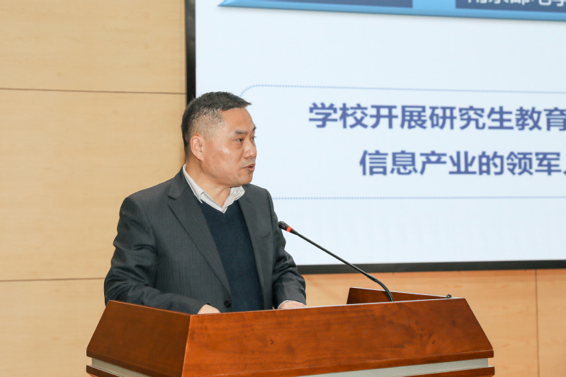 杨树兵处长传达了全国和全省研究生教育会议精神,充分肯定了我校研究生教育取得的成绩。他认为我校为江苏打造研究生教育大省贡献了“南邮体量”,为研究生教育高质量发展提供了“南邮智慧”。他建议要不断优化学科专业布局,深化研究生教育综合改革,提高社会服务能力,希望我校立足新发展格局,强化担当、主动作为,为培养更多高层次创新人才作出更大贡献。