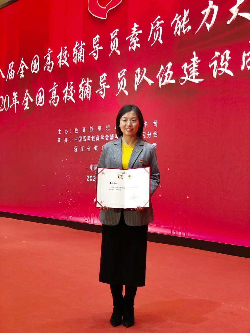 12月28日至30日,由教育部主办的第八届全国高校辅导员素质能力大赛决赛在浙江大学举行。教育部党组成员、副部长翁铁慧出席颁奖仪式并为获得一等奖的选手颁奖。我校外国语学院辅导员高艳丽获得一等奖(全国共10名)。