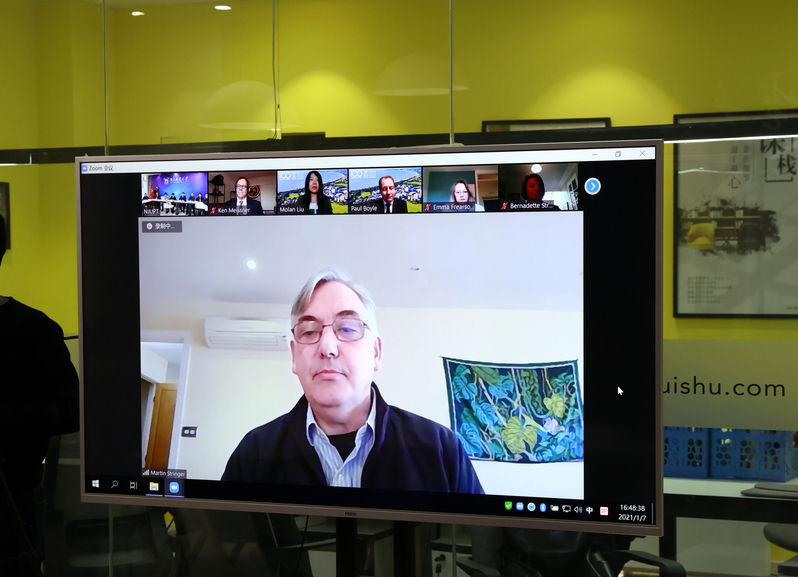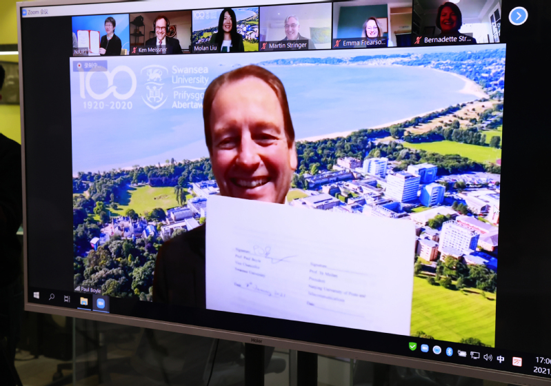 1月7日下午,我校与英国斯旺西大学国际合作线上签约仪式在南邮课栈以视频会议的形式举行。校长叶美兰,校党委常委、副校长张志华,斯旺西大学校长Paul Boyle、副校长Martin Stringer共同出席签约仪式。
