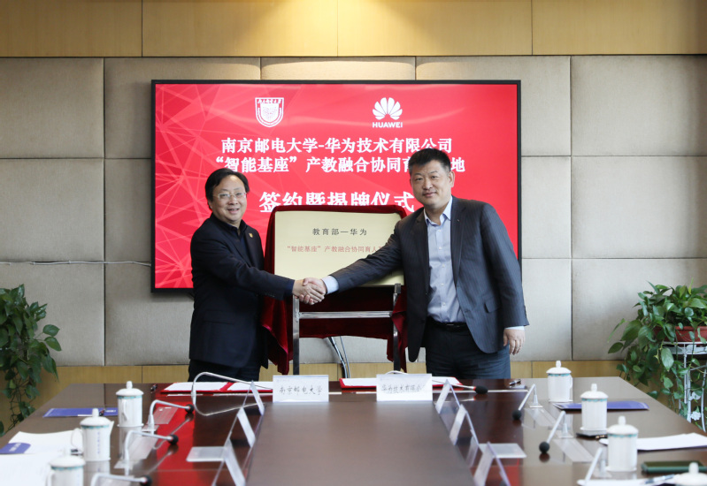 刘陈书记和周跃峰副总裁共同为教育部-华为“智能基座”产教协同育人基地揭牌。孙力娟副校长、郭坤所长代表校企双方签署《南京邮电大学-华为“智能基座”产教融合协同育人基地合作协议》。双方就产教融合、协同育人等方面的合作模式及拓展路径进行了广泛的座谈交流。