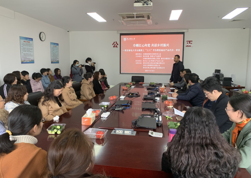 春意融融,百草吐芳。3月8日,是第111个国际妇女节,为进一步发挥“五方挂钩”优势,突出高校帮扶特色,全面促进乡村振兴,在学校组织部、宣传部、工会的指导下,机关党委、科研与产业党委联合省委驻淮阴区帮扶工作队、淮安市淮阴区丁集镇在仙林校区举办“巾帼红心向党 共话乡村振兴”主题活动,活动旨在向学校女教职工送上节日祝福,并邀请巾帼代表为帮扶地区农产品代言、带货。校党委常委、副校长张志华,部分女教职工,省委驻淮阴区帮扶工作队队员,南京凡帝朗科技有限公司和淮安市菜之鲜农副产品有限公司相关负责同志等参加活动。
