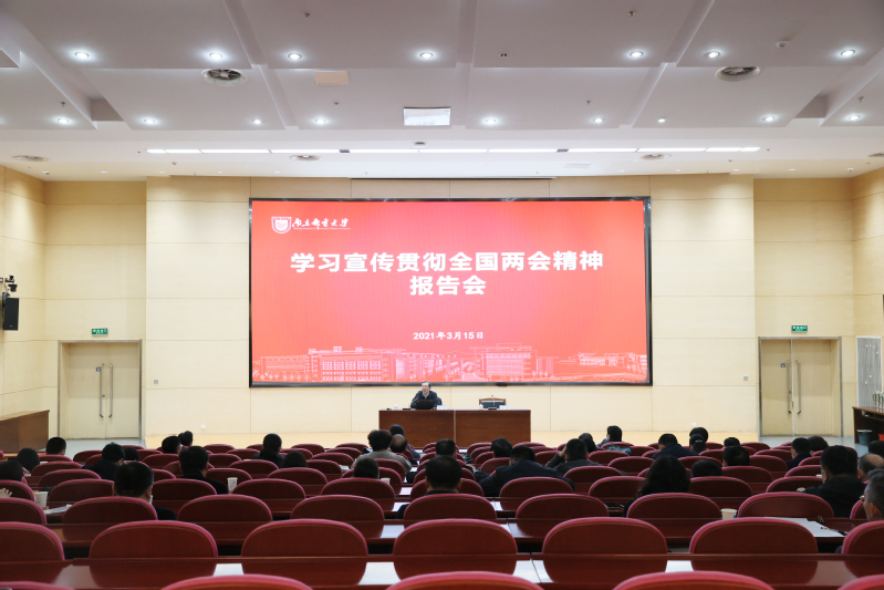 杨震副主席的报告分为十三届全国人大四次会议概况议程,会议重要意义和主要成果,习近平总书记重要讲话和李克强总理到江苏代表团,审议政府工作报告和“十四五”规划等八个部分。在报告中,杨震副主席讲大会时代意义,让大家对“两个一百年”历史节点有了更深刻的认识;讲远景规划纲要,让大家对中国未来5年乃至15年发展的行动蓝图有了更准确的把握;讲与会贡献作为,让大家一同分享了他心系国家发展建言献策的心路历程;讲新的发展阶段,让大家强烈地感受到改革发展的使命感、紧迫感、责任感。报告全面系统、内容丰富、重点突出、条理清晰、入脑入心,对学校学习贯彻“两会”精神起到很大的指导推动作用。报告结束时,全场响起热烈的掌声。