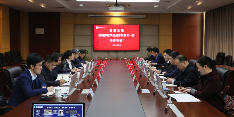 4月23日上午,淮阴师范学院党委副书记、校长焦富民,党委常委、副校长赵宜江一行来我校交流座谈,座谈会在我校仙林校区行政楼第一会议室举行。校长叶美兰主持交流座谈,校党委常委、副校长蒋国平出席座谈。