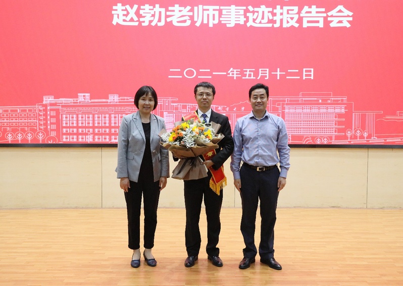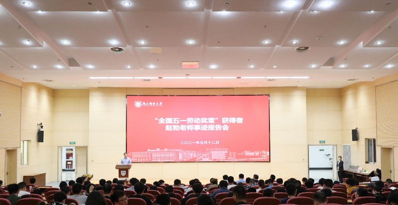 为弘扬新时代劳模精神、劳动精神、工匠精神,鼓舞和激励广大教职工争做新时代的奋斗者,努力创造无愧于时代的新业绩,5月12日下午,我校在仙林校区图书馆四楼报告厅举行时代楷模进校园——“全国五一劳动奖章”获得者赵勃老师事迹报告会。校党委常委、副校长张志华、孙力娟出席报告会,工会、各学院(部)、基层教学组织等相关负责人以及青年教师、学生代表聆听了报告。张志华副校长主持报告会。