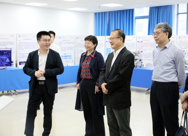 在一流学科创新成果展上,蔡冠深主席一行听取了叶美兰校长对学校总体情况的简要介绍,了解了学校围绕“双一流”学科建设格局,构建“信息材料、信息器件、信息系统、信息网络、信息应用”五位一体的科技创新体系,推进人才培养、工程教育、本硕博贯通培养、育人实践平台等体系建设,实施创新创业提优、研究生培养创新工程所取得的工作成效。相关负责人重点介绍了OLED材料、原型器件、LCD显示、物联网智慧服务系统等科研创新成果。