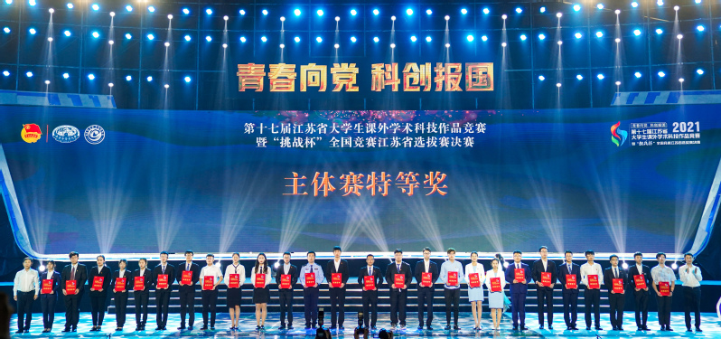 5月15日,第十七届江苏省大学生课外学术科技作品竞赛暨“挑战杯”全国竞赛江苏省选拔赛决赛在南京中医药大学落下帷幕。学校10件参赛作品全部入围终审决赛,经过激烈角逐,5件作品获特等奖,3件作品获一等奖,2件作品获二等奖,以团体总分第一名的成绩首次捧得赛事唯一最高荣誉“挑战杯”,取得重大突破。