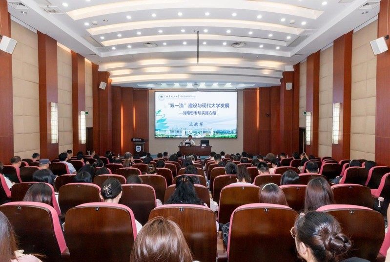 王战军教授作题为《“双一流”建设与现代大学发展——战略思考与实施方略》的报告。他从新阶段“双一流”建设的背景、现代大学和一流学科建设战略思考、创新评估方法促进大学和学科建设等三个方面分析论述了“双一流”建设与现代大学发展,并就处理好本科生和研究生教育、教学和科研、大学和学科等关系问题进行了分析,就“破五唯”创新评估方法进行了探讨。