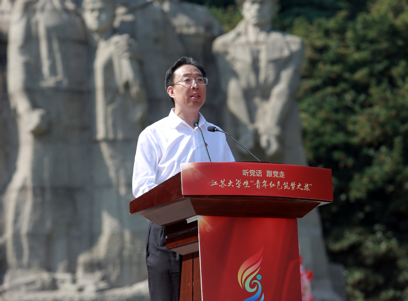 张爱军表示,希望同学们以这次活动为契机,通过参与思政微课、红歌传唱、现场教学等活动,深入了解党在江苏大地的浴血奋战史、艰苦创业史、改革创新史,自觉把个人理想同祖国前途、民族命运紧密联系在一起,做党的光荣传统和优良作风的忠实传人。希望同学们全身心投入其中,尽可能多地了解基层情况,了解各地“争当表率、争做示范、走在前列”的火热实践,了解“强富美高”新江苏建设的最新进展,更好地将专业知识与创新创业紧密结合起来,求真学问、练真本领,为今后在真刀真枪的实干中成就一番事业打下坚实基础。希望同学们从现在做起、从自己做起,自觉树立和践行社会主义核心价值观,自觉用中华优秀传统文化、革命文化、社会主义先进文化培根铸魂、启智润心,砥砺敢于斗争的坚强意志,弘扬艰苦奋斗的光荣传统,保持向上向善的精神风貌,努力成为堪当民族复兴重任的时代新人。
