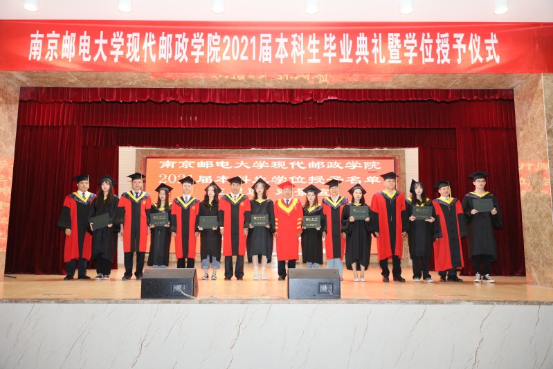 国家邮政局党组成员、副局长刘君,国家邮政局人事司司长刘良一,我校党委书记刘陈,江苏省邮政管理局局长张水芳,物流信息互通共享技术及应用国家工程实验室主任、圆通速递有限公司副总裁相峰,国家邮政局、江苏省邮管局相关部门领导出席典礼。现代邮政学院党总支书记薛晓华、院长孙知信,学院全体2021届毕业生,部分师生及毕业生家长代表参加活动。典礼由副校长汪联辉主持。