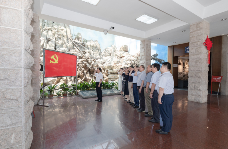 在纪念馆大厅党旗下,校党委书记、校党委理论学习中心组组长刘陈带领全体党员庄严宣誓,重温党员的初心使命,牢记党员的庄严承诺,扛起党员的责任担当。