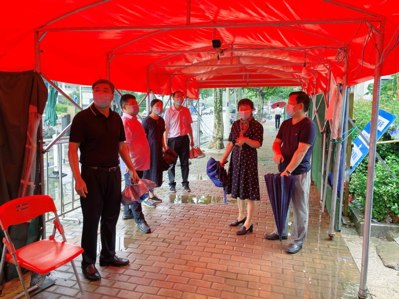 7月27日上午,校长叶美兰、校党委副书记王国平在仙林校区检查防疫防汛和安全保卫工作,看望慰问保安、物管等一线工作人员和考研学生。校长办公室、宣传部、学生工作处、研究生工作部、保卫处、后勤管理处等部门负责人参加检查。