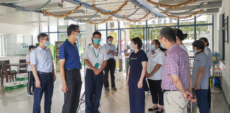 叶美兰校长、郭宇锋副校长先后到仙林校区南门保安室、东门银杏林打草处、一食堂二楼军歌餐饮、水电中心、桃苑25栋、门诊部、仙林物管中心,详细查看了解各项服务保障及防疫工作,向暑期奋战在一线的员工们表示感谢,并送上慰问品,叮嘱大家要牢记安全作业,注意防暑降温,科学安排时间,确保各项工作稳步推进。叶校长强调,正值暑假疫情期间,学校各项工作不能有丝毫松懈,必须加强巡视防控,做好服务保障,努力建设平安校园、美丽校园。