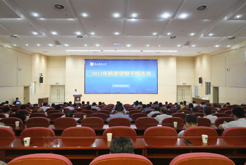 8月29日下午,我校召开2021年秋季新学期干部大会。全体校领导、中层正职干部在仙林校区图书馆四楼报告厅出席会议,中层副职干部线上参会。大会回顾总结上半年学校工作落实和完成情况,研究部署下半年学校重点工作。会议由校党委书记刘陈主持。