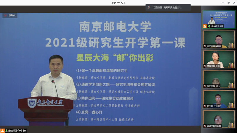 9月12日,我校组织近2800名2021级研究生新生同上开学第一课。今年的开学第一课以“星辰大海‘邮’你出彩”为主题,分四个专题,以线上方式进行。