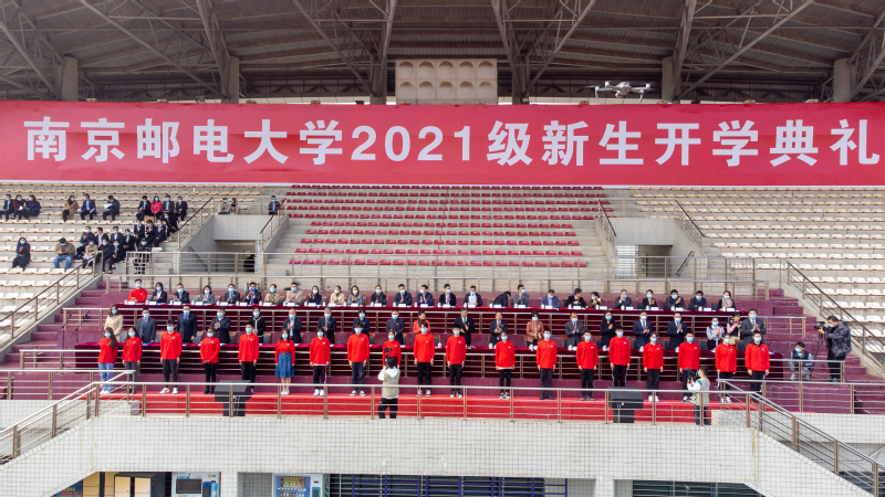 10月22日上午,我校2021级本科生、研究生、留学生开学典礼在仙林校区主体育场隆重举行。恰逢中国共产党建党100周年,全场师生同唱《我和我的祖国》,以一首音诗画朗诵献礼中国共产党建党100周年。校长叶美兰,校党委副书记王国平,校党委常委、副校长蒋国平,校党委常委、纪委书记、省监委派驻南京邮电大学监察专员李子全,校党委常委、副校长孙力娟,校党委常委、总会计师姜小舜,校党委常委、副校长郭宇锋出席开学典礼。典礼由王国平副书记主持。
