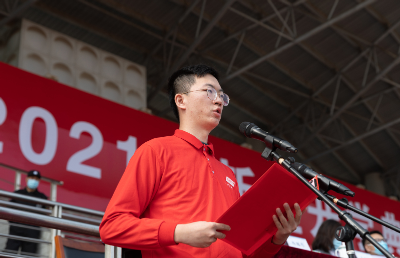 2021级新生代表、贝尔英才学院潘正华同学满怀对未来的憧憬。他用欧阳修所说的“立身以立学为本,立学以读书为本”与大家共勉,希望在未来的四年里接受更丰厚知识的洗礼和精神的浇灌,保持艰苦奋斗的前进姿态,努力实现个人价值,铭记“厚德、弘毅、求是、笃行”的校训,树立远大抱负、厚植家国情怀,以青春之我创造青春之国家、青春之民族,为实现中华民族的伟大复兴之梦贡献青春力量。