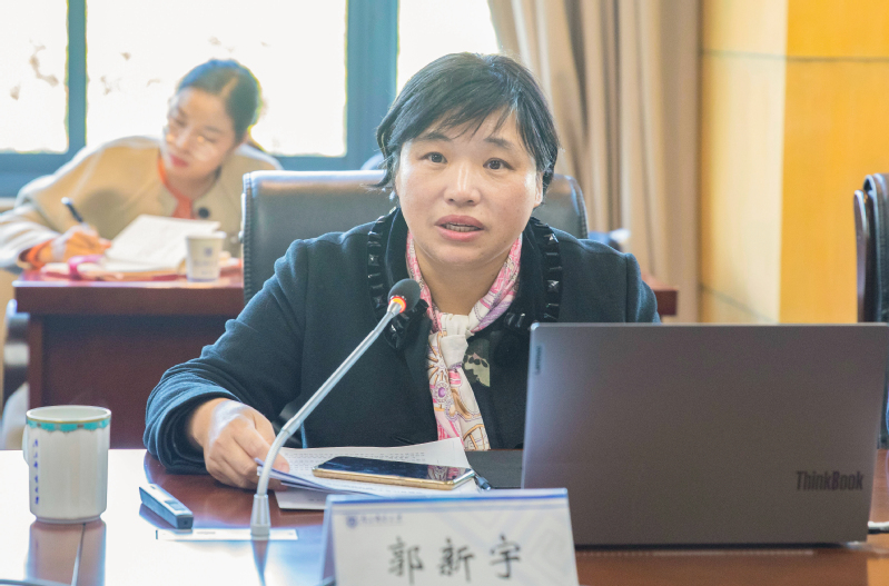 孙力娟副校长欢迎郭新宇副处长来校指导,她简要介绍了学校近年来本科教学和人才培养等方面的主要工作及突出成绩,对省教育厅长期以来给予学校工作关心和支持表示感谢。教务处相关负责人汇报了我校基层教学组织建设的创新举措、典型案例和阶段性成果。