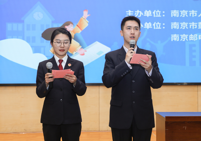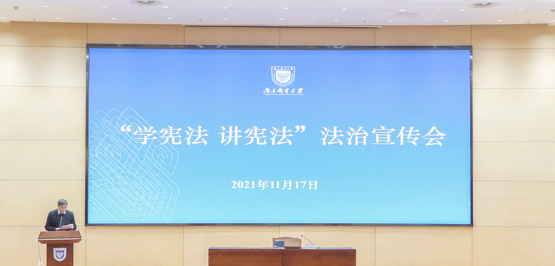 11月17日,由宣传部、法制办和保卫处共同举办的“学宪法 讲宪法”法治宣传会在我校仙林校区图书馆四楼报告厅举行,邀请南京市鼓楼区人民检察院来校开展《法治进高校》普法宣传。南京市鼓楼区人民检察院副检察长徐明明、校党委副书记王国平出席会议。部分师生代表在主会场现场参会,全校师生通过网络直播进行收看。宣传会由南京市鼓楼区人民检察院检察官周方圆和我校计算机学院、软件学院、网络空间安全学院朱昱飞主持。