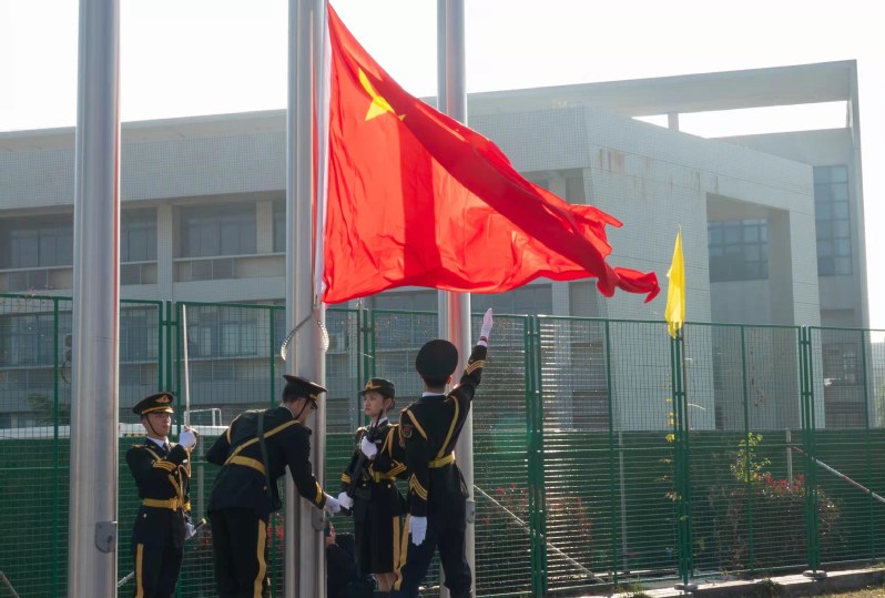 入场仪式后是庄严的升国旗仪式。在雄壮的国歌声中,全场人员肃立,注目鲜艳的五星红旗冉冉升起。