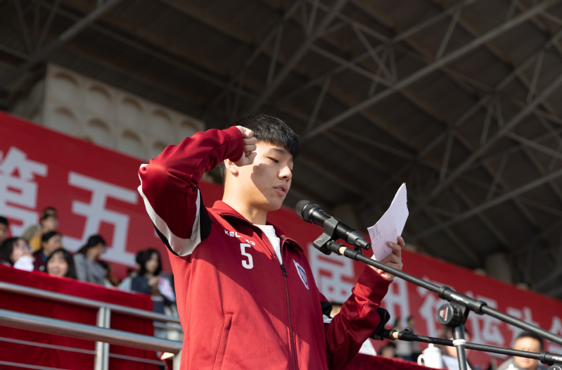 洪晃同学代表裁判员宣誓,陈逸菲同学代表运动员宣誓。