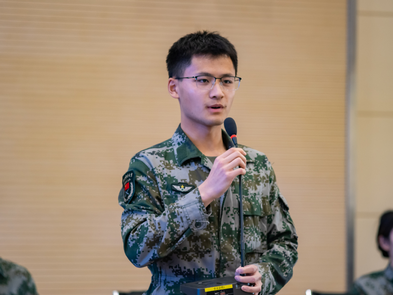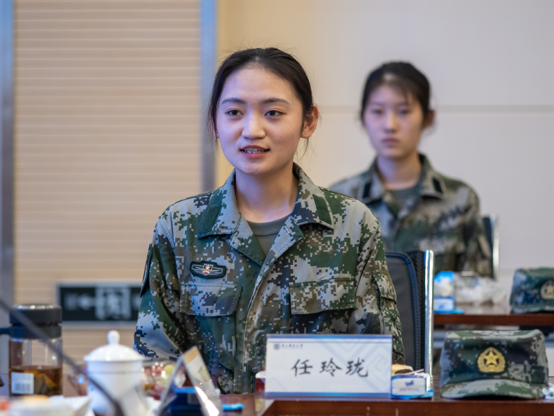 座谈会上,队员们回味着加入国护队的初衷,感慨着在队中成长的点滴,分享着出任务时的动人故事。他们中,有毅然加入国护队、为队伍添砖加瓦的退役大学生士兵,有历经层层选拔、受过严格训练的老队员,也有用自己赤忱热情、勤奋又井井有条的新队员。对国旗的守护、对军人的崇敬、对军装的向往将来自五湖四海的队员们凝聚在一起,“沐朝露,伴夕阳”的升降旗仪式、“千锤万击”的队列训练培养了他们的集体荣誉感,“无惧风雨,并肩前行”的信念支撑着他们为南邮这个“家”撑起了一片天。每位队员讲话结束,在座师生们都致以真挚且热烈的掌声,队歌《祖国不会忘记》的歌声回荡在会场,坚定亦激昂。