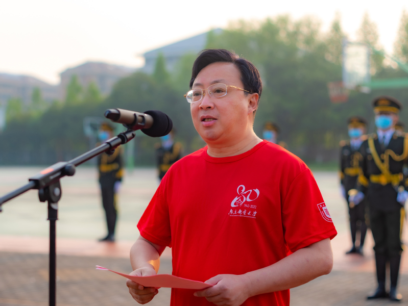 旭日东升,晨辉万丈。4月20日清晨,我校在仙林校区南区运动场举行办学80周年校庆日升国旗仪式暨中贝通信杯“薪火传·踏歌行”校庆健身跑校园跑,用一场庄严而隆重的升国旗仪式,以一段酣畅而激情的奔跑,共同祝福学校80周年华诞,携手开启学校迈向“80后”新征程的大门。校党委书记刘陈,校长叶美兰,校党委常委、副校长张志华,荆晅,郭宇锋出席,根据疫情防控管理的相关要求,部分师生代表参加了活动。