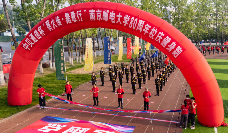 随后,中贝通信杯“薪火传·踏歌行”南京邮电大学办学80周年校庆健身跑校园跑活动由校长叶美兰宣布开跑并开发令枪。4月17日,学校还举行了校庆健身跑线上跑活动。红色薪火传递不息、红色血脉赓续不辍,共赴前方,共创美好未来。