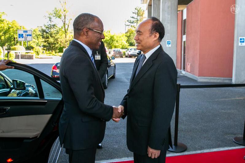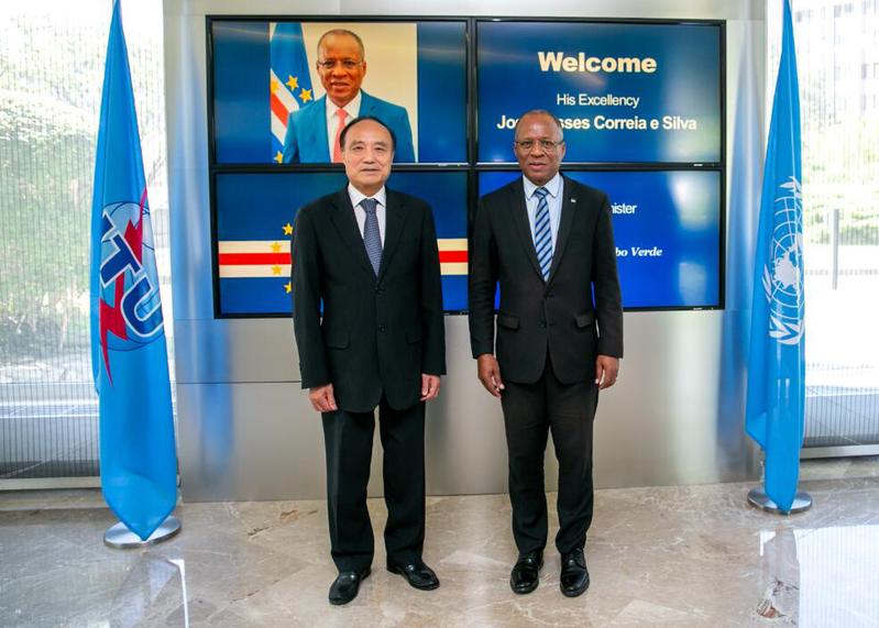 7月15日,我校杰出校友、国际电信联盟秘书长赵厚麟在国际电信联盟总部会见佛得角总理席尔瓦。