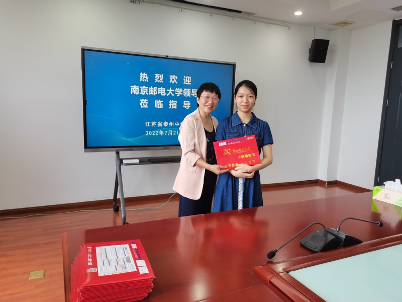 7月22日下午,校党委常委、纪委书记、省监委派驻南京邮电大学监察专员李子全率电子与光学工程学院、柔性电子(未来技术)学院和管理学院相关负责人分别前往江苏省沭阳高级中学、沭阳如东中学,为2022级76名本科新生现场颁发录取通知书。