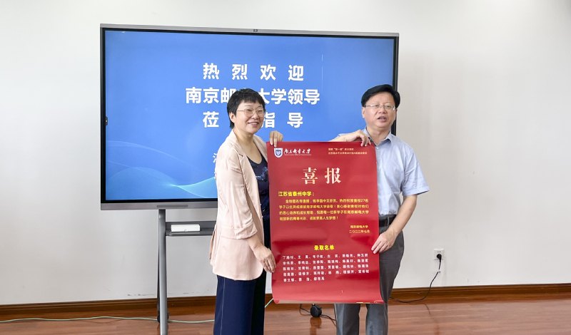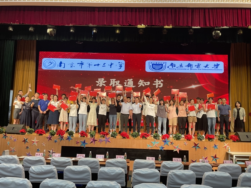 在4所中学的录取通知书颁发仪式上,刘书记向各中学赠送了喜报,为137名本科新生颁发了录取通知书。他向多年来关心支持南京邮电大学人才培养工作的各中学表示衷心的感谢,对各中学在今年高考中取得的优异成绩表示热烈祝贺,并为即将在南京邮电大学开始新生活的2022级新生们送上美好的祝福。